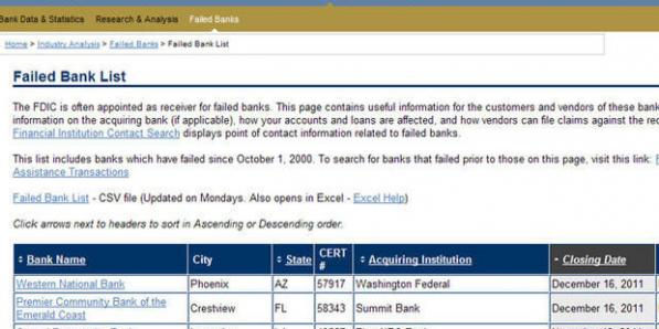 Banque Banque USA: moins de faillites bancaires en 2011 Le nombre de faillites bancaires a diminué en 2011 aux Etats-Unis et ce recul devrait se poursuivre en 2012, selon les chiffres de la Compagnie fédérale d'assurance des dépôts bancaires (FDIC).