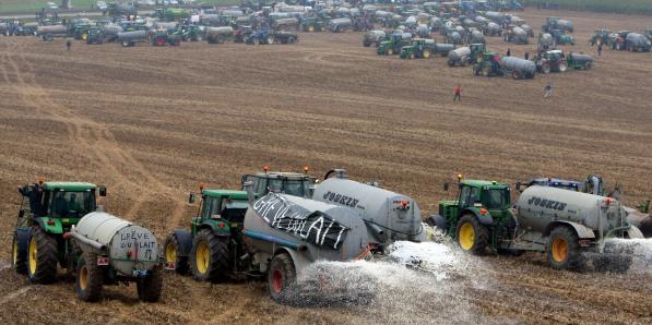 Politique économique Politique économique Crise agricole: des centaines de tracteurs à Ciney, action symbolique et appel au boycott Plusieurs centaines de tracteurs, environ 500 selon les organisateurs, et des centaines d'agriculteurs, venus des quatre coins de la Belgique et même des pays limitrophes, se sont rassemblés lundi à Ciney, 10 ans jour pour jour après l'épandage de trois millions de litres de lait, pour dénoncer les crises qui continuent de frapper le monde agricole.