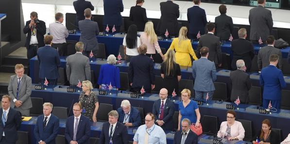 Politique économique Politique économique Les élus du Brexit Party tournent le dos lors de l'hymne européen au Parlement Ils n'étaient pas censés revenir, mais le report du Brexit a changé la donne : les troupes britanniques de l'europhobe Nigel Farage ont fait une entrée tapageuse dans le nouveau Parlement européen mardi, disant espérer "être sans emploi" fin octobre.