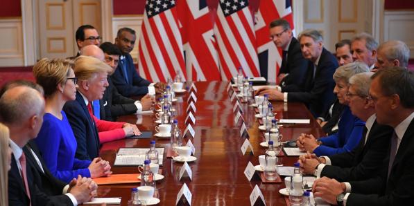 Politique économique Politique économique Trump veut nouer un accord commercial "très, très substantiel" avec Londres Le président américain Donald Trump a déclaré espérer nouer un "accord commercial très, très substantiel" avec le Royaume-Uni, au deuxième jour d'une visite d'Etat dans le pays, qu'il a encouragé à rompre les liens avec l'Union européenne sans accord.