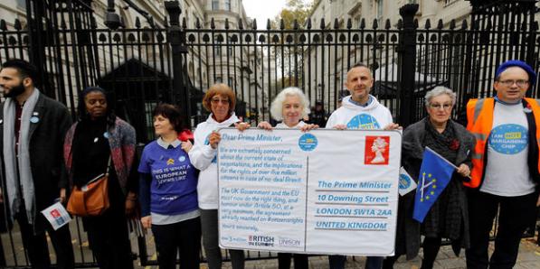 Politique économique Politique économique Brexit: une chaîne humaine sur Downing Street pour défendre les droits des expatriés Des centaines de citoyens européens résidant au Royaume-Uni et des Britanniques installés dans des pays de l'UE ont formé une chaîne humaine devant le 10 Downing Street lundi pour demander au gouvernement britannique de garantir leurs droits dans l'hypothèse d'un Brexit sans accord avec l'Union européenne.