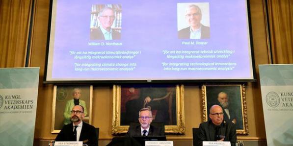 Opinion | Trends Tendances Opinion | Trends Tendances Après l'attribution du Prix Nobel d'Economie, quels sacrifices pour l'environnement? L'attribution du prix Nobel d'économie à Paul Romer et William Nordhaus a d'abord ravi nombre de militants écologistes. On a fait remarquer que leurs études, et surtout celles de Nordhaus, font le lien entre l'économie et l'écologie et ils y ont vu une victoire de leur cause contre le réchauffement climatique. La réalité est pourtant plus nuancée.