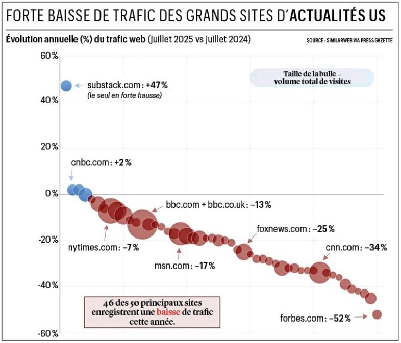 Au départ, ce phénomène concernait surtout les médias. Il touche désormais l’ensemble du tissu économique. Dans la banque, la santé, le retail ou le tourisme, de nombreuses entreprises constatent une baisse du trafic en ligne, alors même que la notoriété reste stable. Les gens continuent de s’intéresser à elles, mais ils n’ont plus besoin de venir les voir. Cette évolution traduit un changement plus profond : l’internaute ne choisit plus vraiment. Les plateformes, désormais, choisissent pour lui. Elles trient, hiérarchisent, simplifient. Elles montrent ce qui retient le plus longtemps l’attention, ce qui suscite le plus de réactions. Et le reste disparaît. Le constat est assez triste : c’est un monde où la curiosité recule au profit de la prescription.
