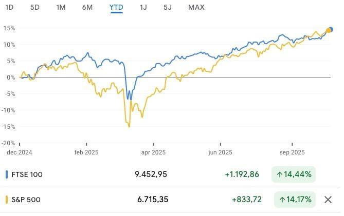 Et pourtant, la bourse britannique est l’une des plus performantes cette année. Elle suit même sans peine le S&P 500 pour l’instant.