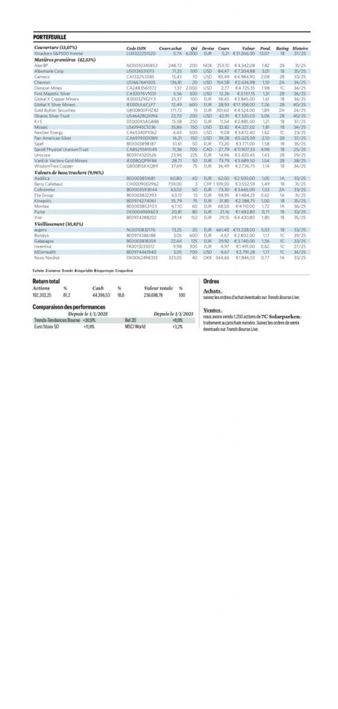 Le portefeuille bat toujours le marché. Depuis le 1er janvier 2025, il affiche une progression impressionnante de +30,9%, battant nettement ses indices de référence : le Bel 20 (+9%), l’Euro Stoxx 50 (+12%) et le MSCI World (+3,2%).