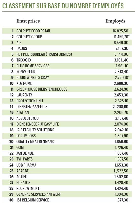 La chaîne de supermarchés qui tente depuis 50 ans de réaliser sa promesse des prix les plus bas constitue toujours la plus grande activité du groupe de distribution diversifié dont le siège est à Hal. Plus loin dans la liste, on retrouve encore de nombreuses autres sociétés issues de la même écurie : Colruyt Group (11.459 employés), Buurtwinkels Okay (2.720), le grossiste en viande Vlevico (780), le détenteur de licence de la formule Spar, Retail Partners Colruyt Group (773), l’entreprise de foodservice Solucious (708), la chaîne de magasins bios Bio-Planet (519) et l’entreprise logistique E-Logistics (509).