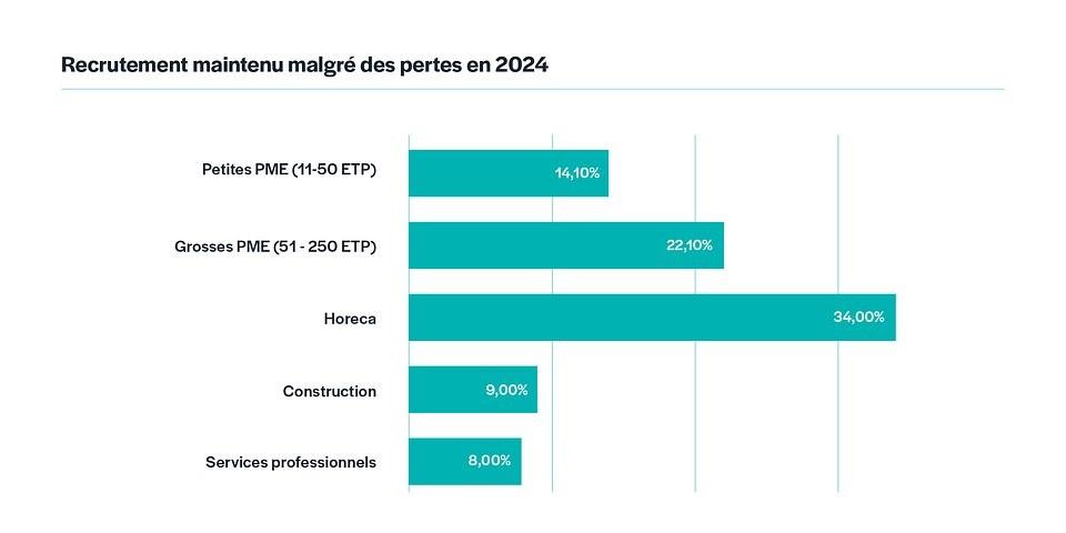 Le phénomène varie selon la taille des entreprises. Dans les petites PME (11 à 50 employés), 14% recrutent malgré les pertes. À l’inverse, dans les grandes entreprises, cette proportion recule de 26% à 22%.