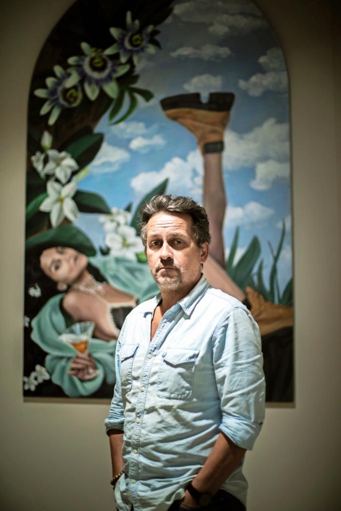 “L’ambiance est feutrée, mais un peu minimaliste”, commente d’emblée le maître des lieux. Si ce n’est cette longue silhouette nue qui domine la fresque peinte juste derrière le bar, étendue entre les villes de New York et de Gand en arrière-plan, où un cygne dispute étrangement la vedette à une poignée de cuberdons. “C’est ma fille Adeline, sourit Yves Jadot. Elle est artiste et elle se met toujours en scène dans ses œuvres.”