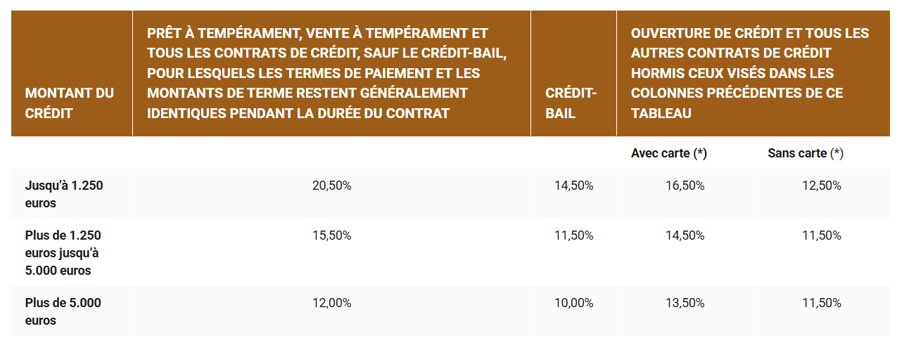 Ces nouveaux plafonds s’appliquent donc aux contrats signés dès ce lundi, mais aussi aux crédits qui ont un taux variable.
