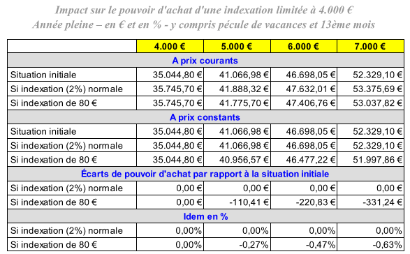 Mais sur un an, en tenant compte du 13ᵉ mois et du double pécule, l’érosion de pouvoir d’achat devient plus visible et progresse avec le niveau de rémunération, jusqu’à 331 euros, pour les salaires de plus de 7.000 euros bruts. Mais les travailleurs au-dessus de 4.000 euros pourraient tenter d’obtenir des compensations via des avantages extra-légaux, moins taxés.