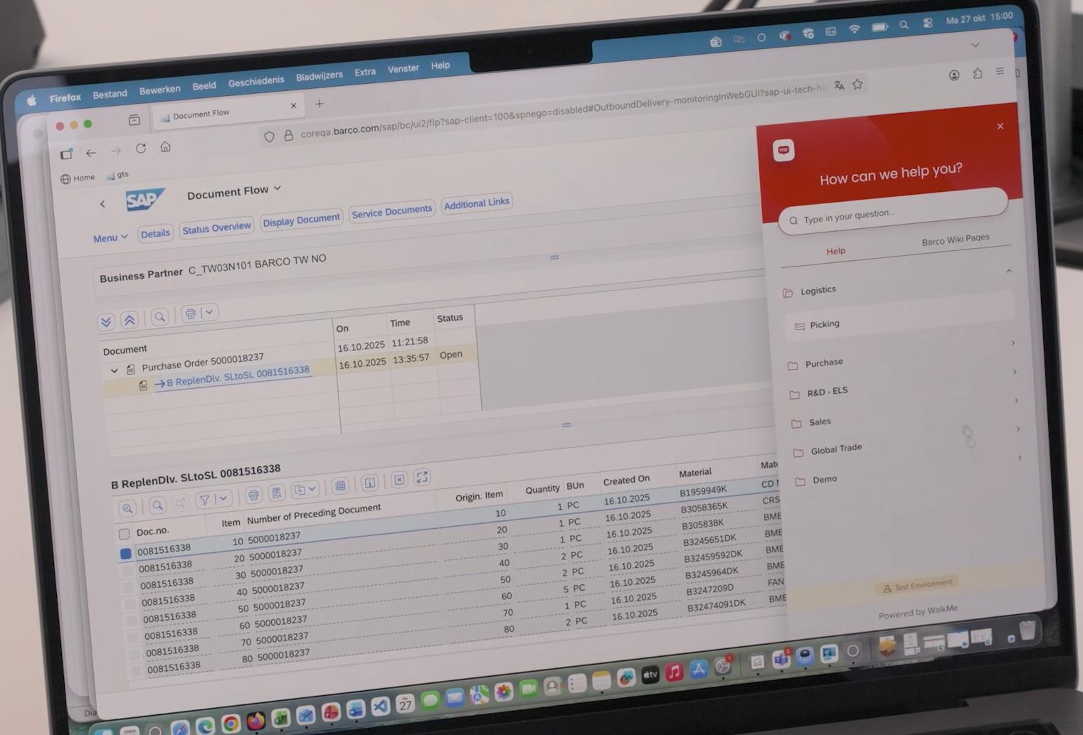 Le projet a duré 10 mois. « Grâce à la collaboration de l’équipe interne de Barco et à notre expertise technique et fonctionnelle, nous avons mené à bien ce projet en un temps record », explique Vanstechelman. « La mise en service était un moment stressant. Compte tenu du nombre important d’intégrations, l’impact potentiel sur le client et les processus de production était indéniable. Mais tout s’est déroulé remarquablement bien », témoigne Cindy Huyghens. « Grâce à trois semaines de tests approfondis, plus de 1 500 scénarios ont été testés avec les équipes informatiques et les utilisateurs métiers, la plupart des bugs ont été corrigés avant la mise en production. Un investissement qui s’est avéré payant. »