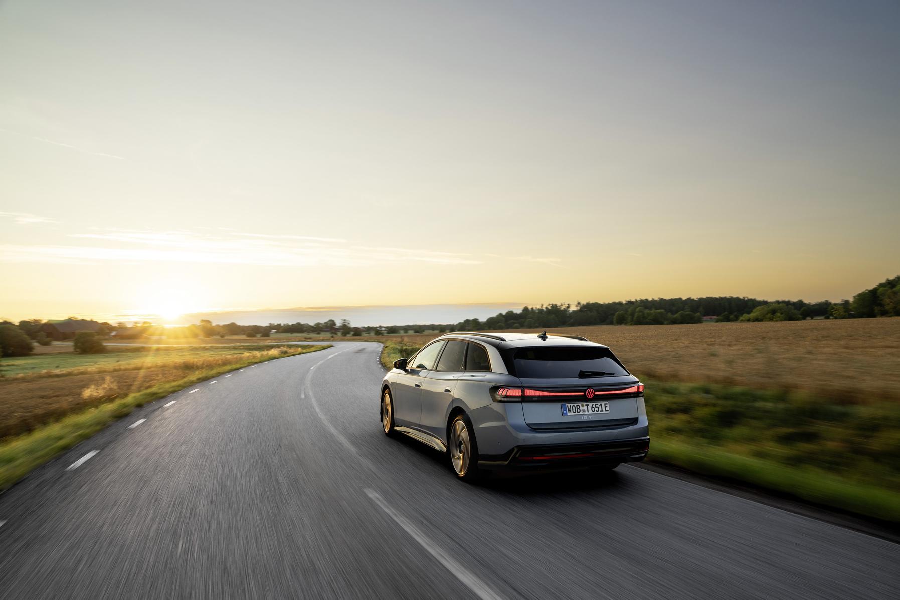 Question design, il combine les éléments classiques d’un break familial avec ceux d’un break de chasse, offrant une esthétique aussi fonctionnelle que séduisante. L’ID.7 Tourer s’étend sur 4,96 m de long, 1,86 m de large et 1,54 m de haut, avec un empattement qui frôle les 3 mètres, distillant un espace généreux tant pour les passagers que pour leurs bagages. D’ailleurs, avec son toit prolongé et son petit spoiler à l’arrière, l’ID.7 Tourer nous séduit par son look et son profil dynamique, affichant un coefficient aérodynamique (Cx) de seulement 0,24 pour une efficience et une autonomie optimisées.