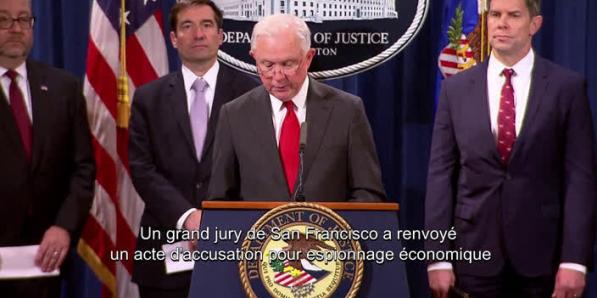 Vidéo | Z-News Vidéo | Z-News Espionnage industriel: la Chine veut des preuves des USA 02/11/18 A chaque jour son nouveau rebondissement dans la relation entre les Etats-Unis et la Chine. Alors que les tensions commerciales entre les deux puissances semblent s'apaiser d'un côté, Washington pourrait bien avoir remis le feu aux poudres hier. Le département américain de la justice a en effet accusé une société chinoise et une société taïwanaise d'espionnage économique à l'encontre d'une entreprise de l'Idaho. Jean-Michel Herbint nous en dit plus.